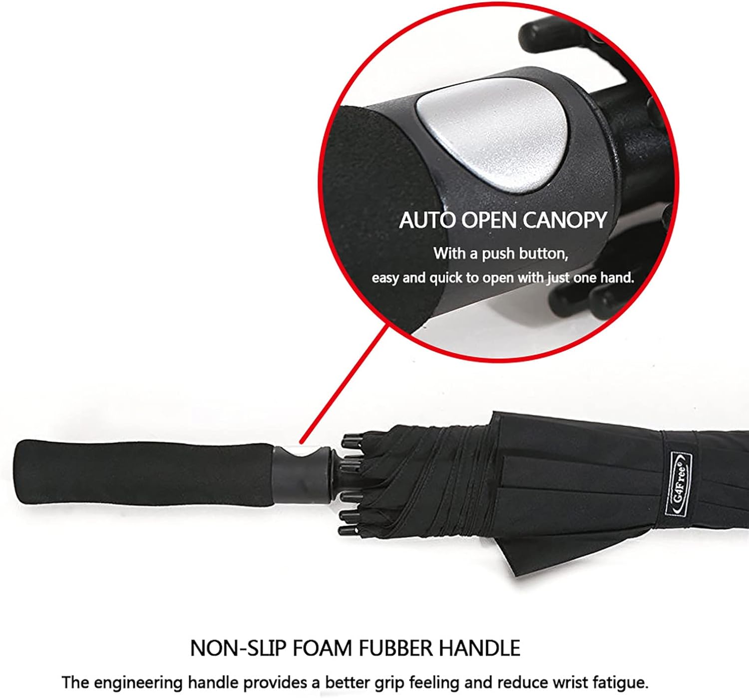 THE ULTIMATE GOLF UMBRELLA With a 47/54/62/68-inch canopy and heavy-duty design, the G4Free Ultimate Golf Umbrella is an ideal companion for golfers, and business professionals, or for daily life. With its sleek all-black design, comfortable EVA grip, sturdy frame, and auto open mechanism, the G4Free Ultimate Golf Umbrellas are perfect in a metropolitan city or a sports field!