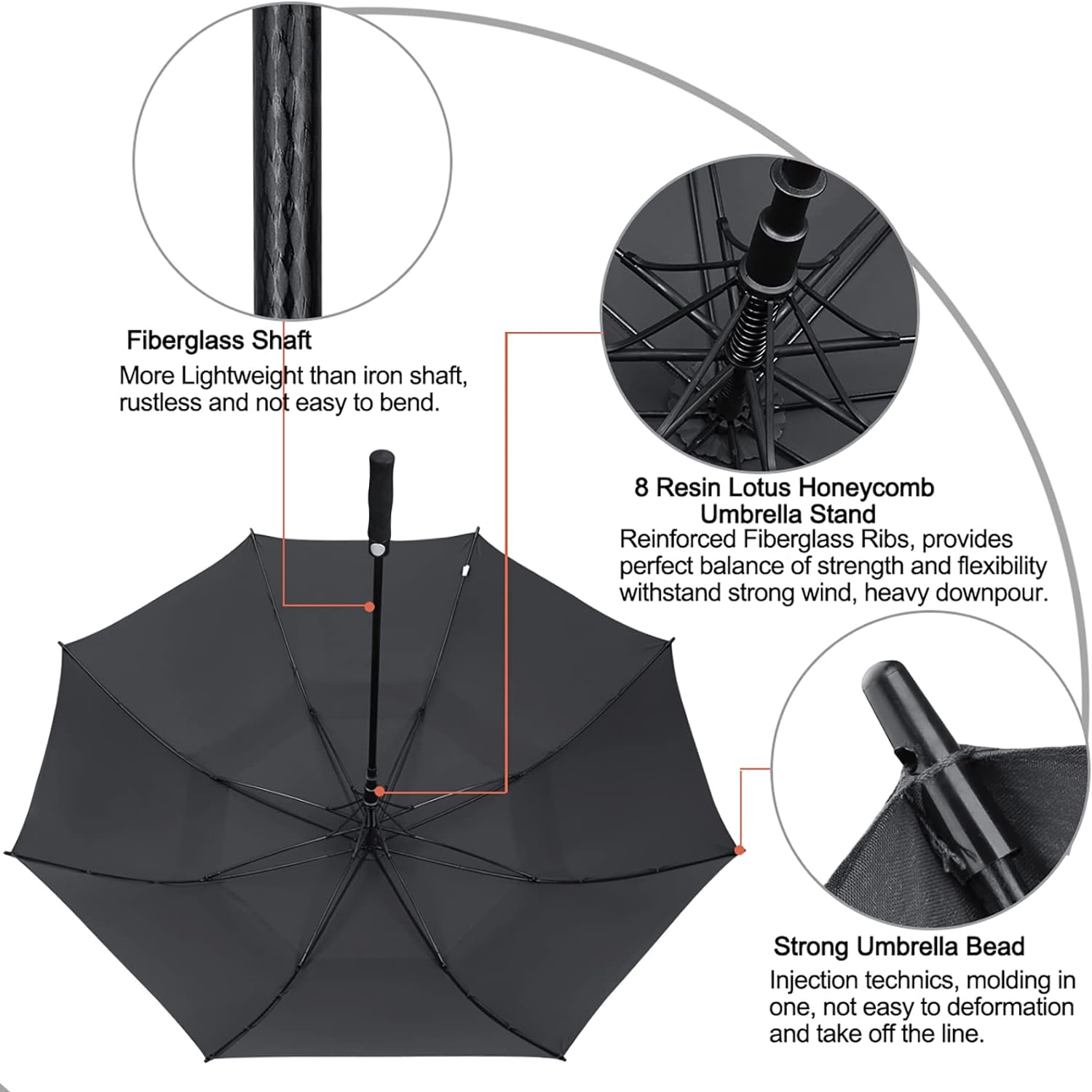 G4Free 47/54/62/68 Inch Automatic Open Golf Umbrella Oversize Extra Large Double Canopy Vented Windproof Waterproof Stick Umbrellas