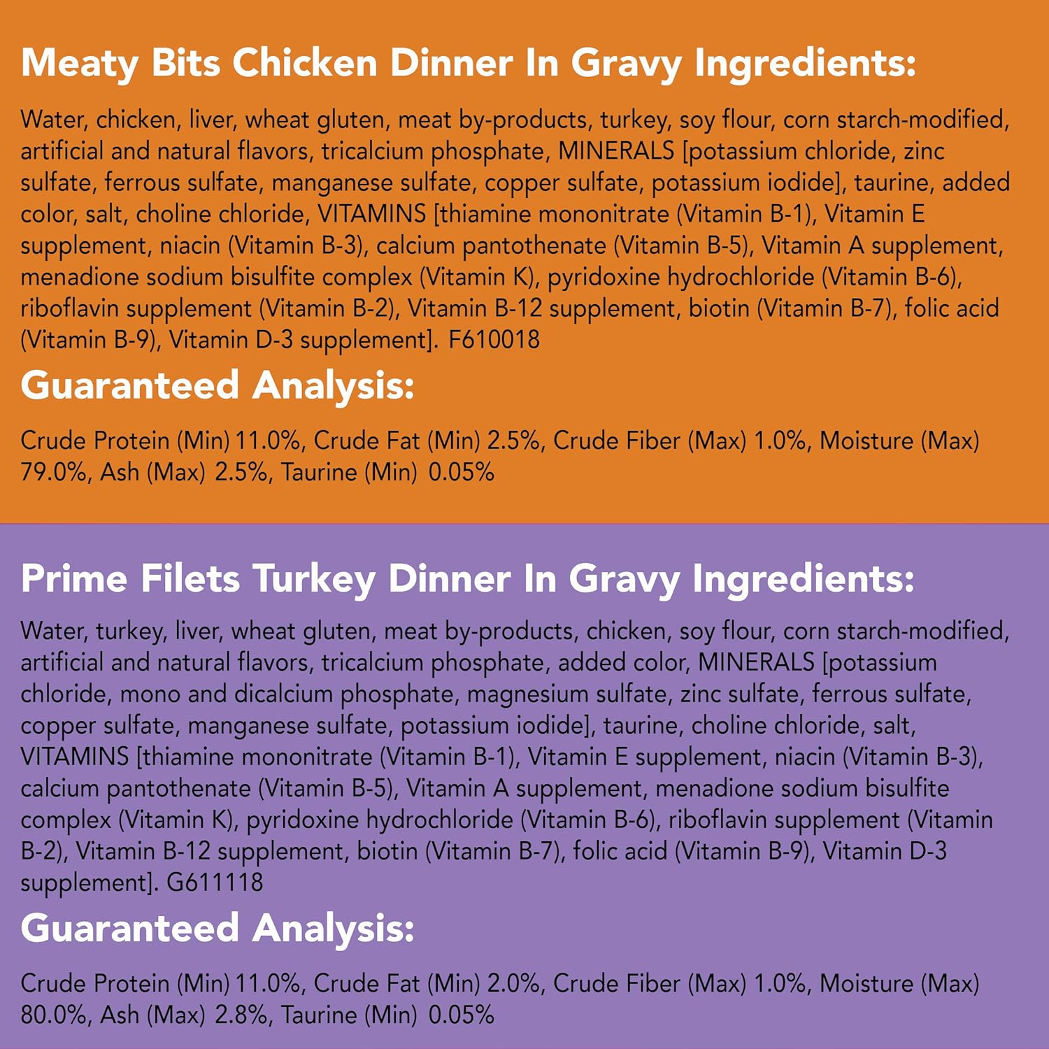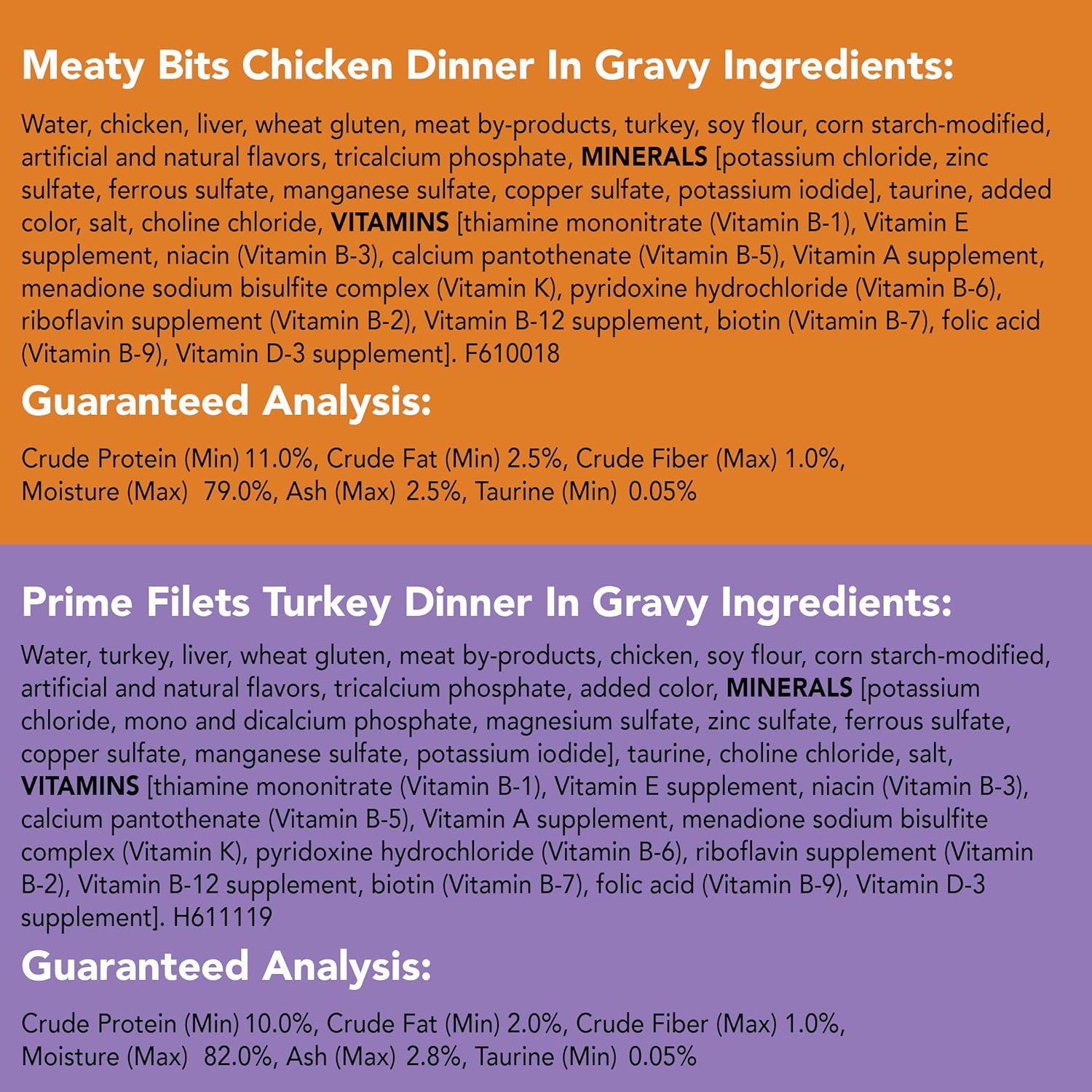 Thin filets of poultry are easy for cats to chew and swallow. Formulated to provide essential nutrition for adult cats